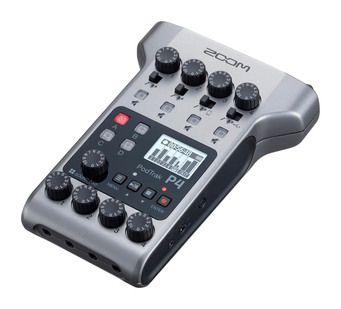 ZOOM P4は、プロフェッショナルなポッドキャスト制作のために設計された高性能レコーダーです。4つのXLRマイク入力を備え、各入力にファンタム電源を搭載しています。最大70dBのゲインを実現する高品質なマイクプリアンプを内蔵し、クリアな音声録音を可能にします。各入力には個別のゲイン調節ノブとミュートボタンを装備し、細かな音声調整が可能です。4つの独立したヘッドフォン出力により、参加者全員が自身の音声をモニタリングできます。さらに、4つの入力とSOUND PADを別々のトラックとして録音できる機能を搭載。パソコンやAndroid、iOSデバイスへの録音にも対応し、多様な用途に活用できます。
