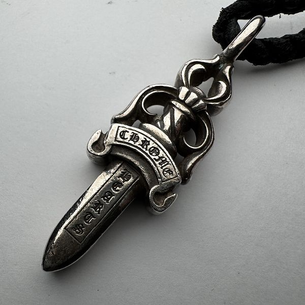 CHROME HEARTS クロムハーツ DOUBLE DAGGER ダブルダガー ペンダント レザーブレード スクロールチップ