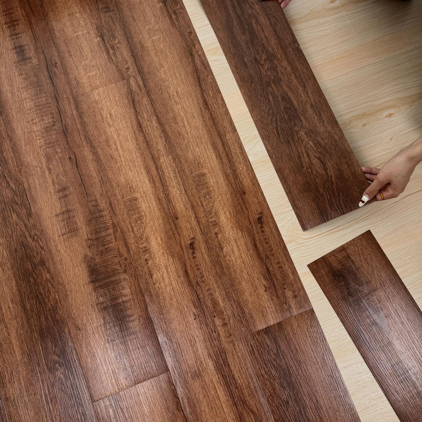 【リアルな木目調感でさらっとした質感】凹凸エンボス加工済みで本物そっくりの木目と見間違うほど!【仕上がりが綺麗】表面特殊加工によりリアルな木目を実現 【簡単床模様替え】ボロボロした古い床または少し凸凹の平面上にも貼ることができます。