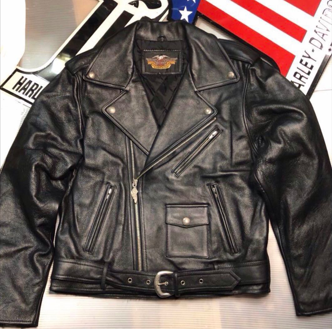 現在はかなりのレアなモデルとなった、現行型モデルにこのような、ヴィンテージもののHarley-Davidsonのレザージャケットは、ヴィンテージ特有の大きなダブルの襟とマットなシルバーZIPとバックデザインも年代を超えてクールなファッション・アイテムとしても世界中の影響力のある有名人・モデル・俳優・アーティストなどの着用愛用で揺るがぬブランド力を誇示するハーレーダビッドソン・年数を経過しても価値の下がらない、上がるというHarley-Davidsonは、日本でもモデル・アーティスト・俳優・有名人が愛用のブランドとしての地位を獲得しています!★街歩き、ライデイング問わず愛用出来る★現在はかなりのレアなモデルとなったクールなHarley Davidsonライダース・ジャケット・本革製ライダース・ジャケット類は、バイクライダースギア、街歩きにもファッション性の高い、クールなヴィンテージモデルは、いつの時代にも人気の高いアイテムです!Harley Davidson※世界中にハーレーファッション愛好家やコレクターがいます、芸能界やモデルにもファンが多く人気の入手困難アイテムです! ※ハーレーダビットソン製ジャケットは、たとえ30万円で購入しても、一生物です!食べ物は食べて終わりですが、一度買ったら一生使えるレザージャケットは、とても安くて身を守り、ファッションアイテムとしてずっと使える疲労知らずのアイテムです!※ハーレーダビットソン・ファッション・アイテムは、日本・本国・米国・欧米全土・世界中でコレクターや愛好家などのファンが多く、特にレアなモデルはニューヨーク、カリフォルニア、ロンドン、パリ、ベルリン、ミラノ、原宿、秋葉原、とヴィンテージ品や新品専門店などで高額なプライスが付いています、新品購入時の数倍のアイテムもあります、日本内外にも有名芸能人やモデル、インフルエンサーなどにも愛好家が多い事で知られています、Harley Davidsonブランド・ファッション・グッズ・アイテムは今や人気度の高いブランドとして流行しています、、またレアモデルは現行の新しいタイプのモデルには無い、ワイルド・ハレー乗り、もはやライデイングギアだけでは無く、ファッション、街歩きアウターとして、エンドレスな流行を繰り返す人気のアイテムです!※