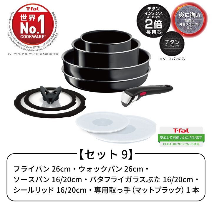 ・ ティファール T fal フライパン セット インジニオ ネオ ハードチタニウム インテンス セット9 L 43891 ガス火 取っ手のとれる 取っ手がとれる 鍋 ガラスぶた 取っ手 9点セット ガス 直火 IH不可