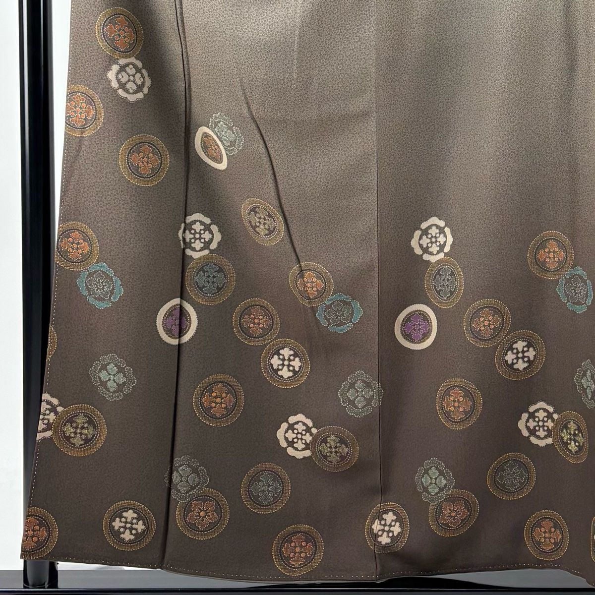 付下げ 身丈155.5 cm 裄丈64.5 M 袷 人間国宝 六谷梅軒 落款 丸文 花 金彩 灰茶 正絹