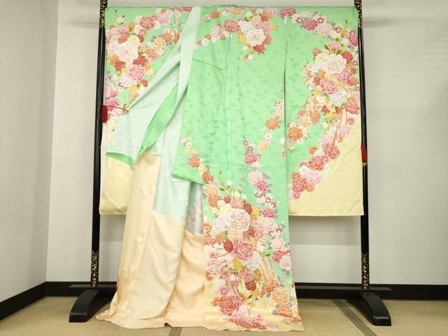 平和屋着物 豪華振袖 刺繍 舞花文 暈し染め 金彩 仮絵羽 ck
