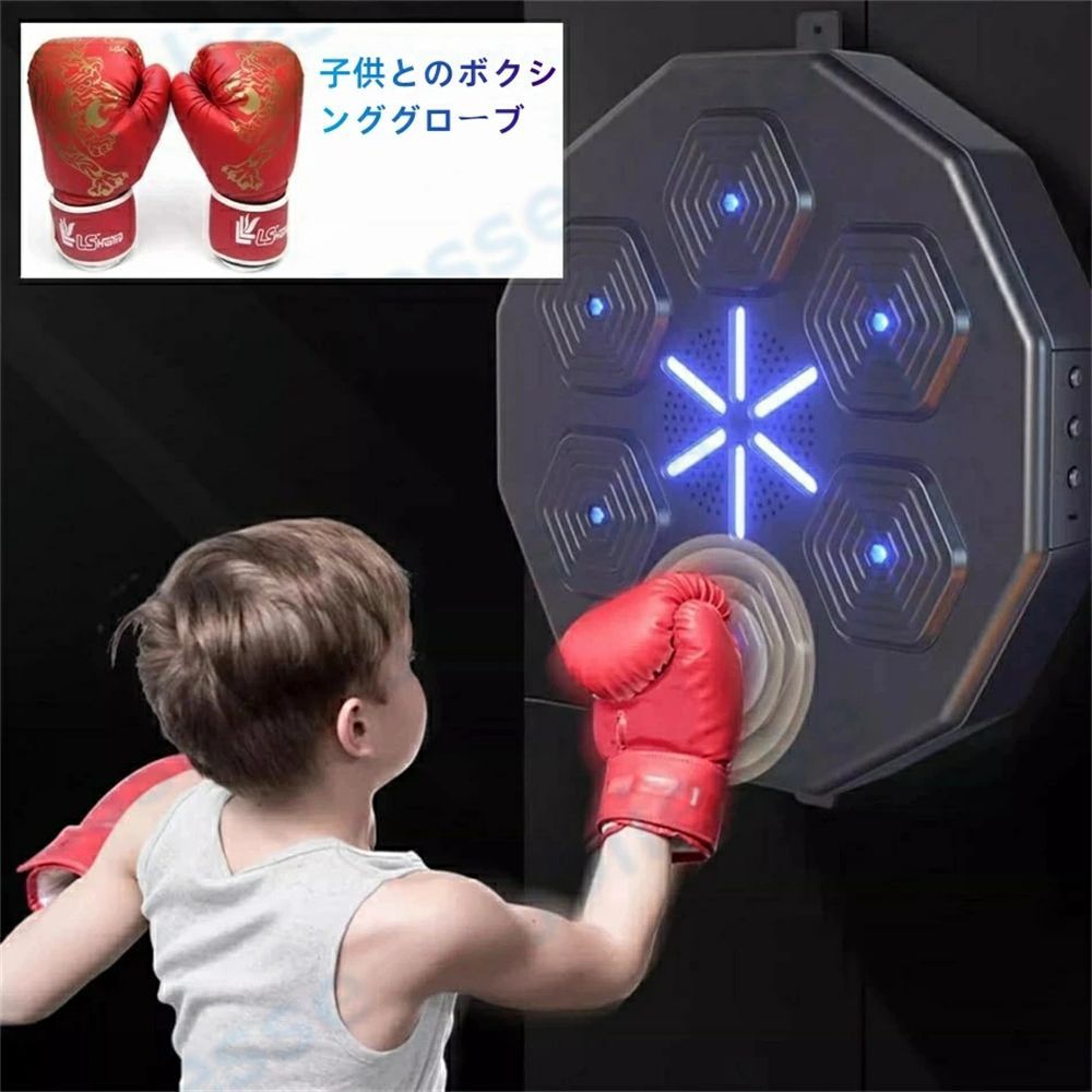 音楽ボクシングマシン レッドグローブ付き スマート ディスプレイ付き 子供 大人 壁パンチングバッグ