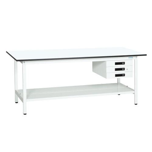 サカエ 軽量作業台KAタイプ 抗菌加工 キャビネット3段付 中板付 1500 900 740 mm KA 159 CTMW 2228272